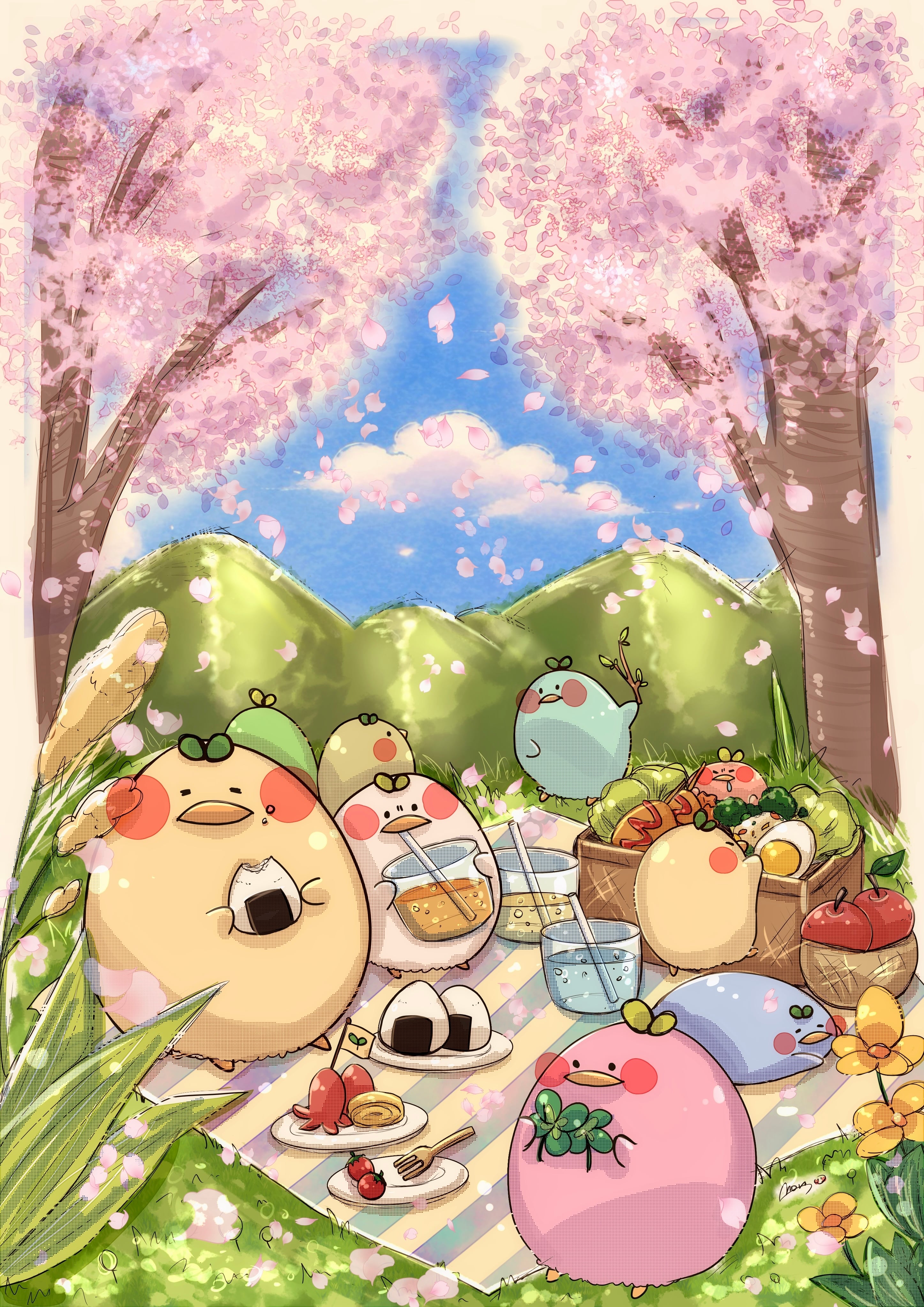 ひよこっちたちの幸せなお花見のひとときを